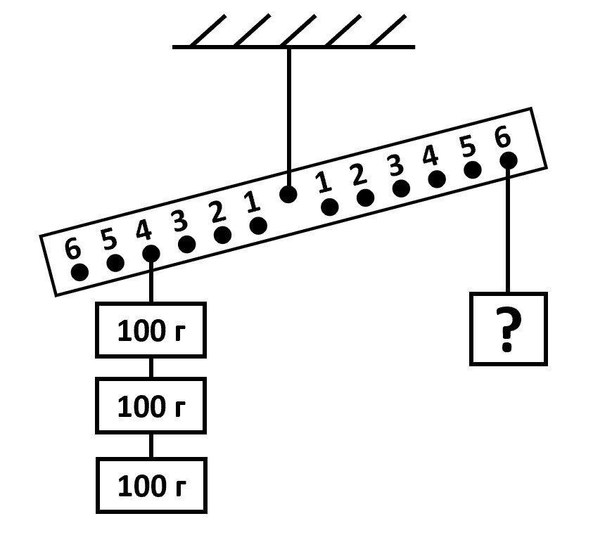 Figure 2. Find the weight of the load that needs to be placed on the sixth position on the right arm to bring the lever into balance.